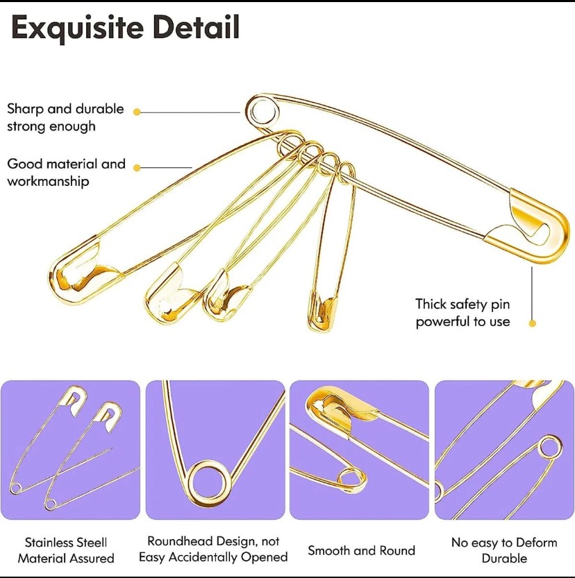 16 Pieces -Safety Pins, Inch Safety Pins Clothing Clips Tool Decorative Safety Pins Assorted, Sewing Accessories Kit