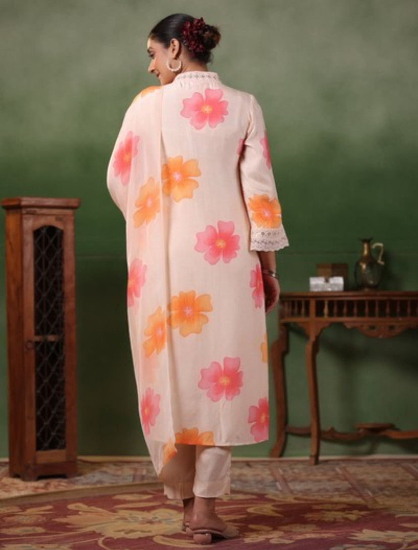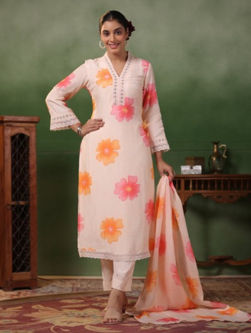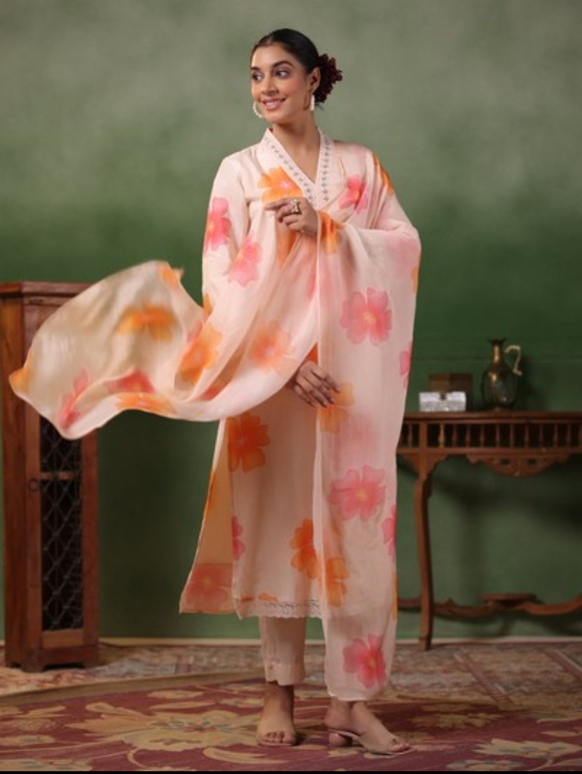 TOP FABRIC:PREMIUM FRENCH CREPE BOTTOM FABRIC : VISCOSE RAYON DUPATTA : PREMIUM ORGANZA(TABY) TOP WORK: EMBROIDERY BOTTOM WORK