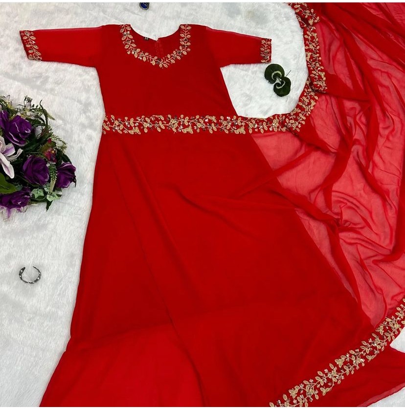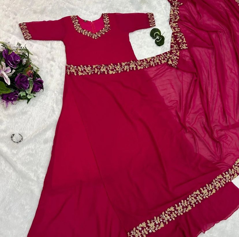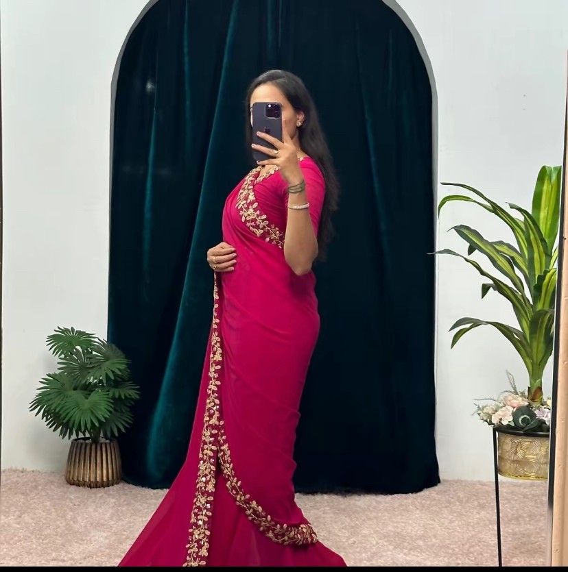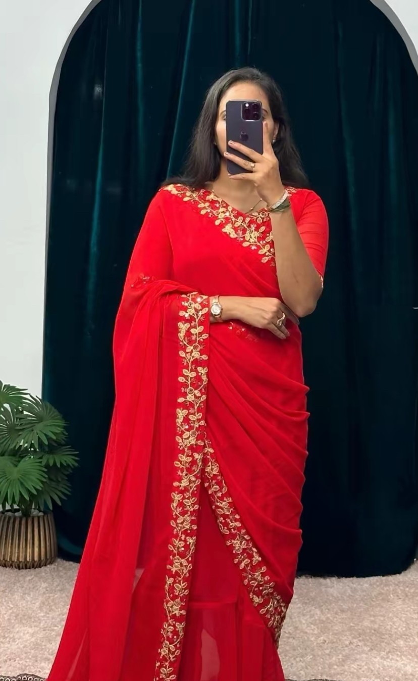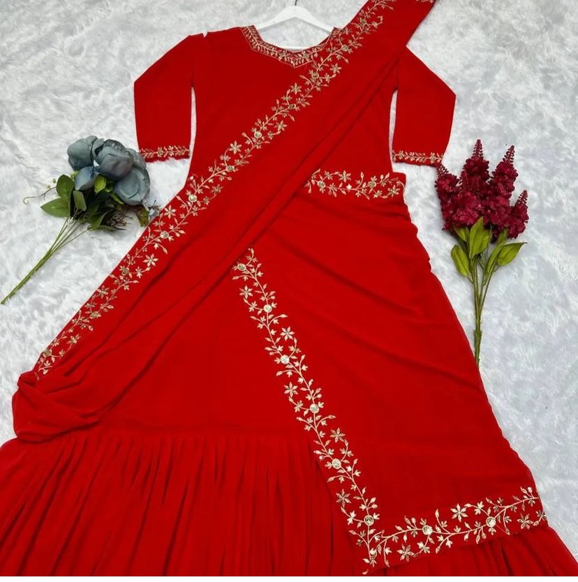 Georgette Saree Gown Red & Rani Color