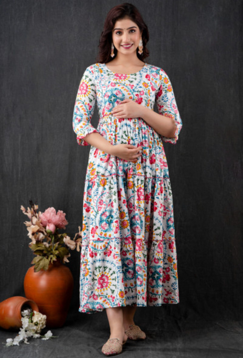 Embrace Elegance And Comfort With This Graceful White Floral Maternity Maxi Dress. Designed For Expecting Mothers, This Dress Features A Soft White Base Adorned With Vibrant Multicolor Floral Prints, Adding A Fresh And Cheerful Touch.