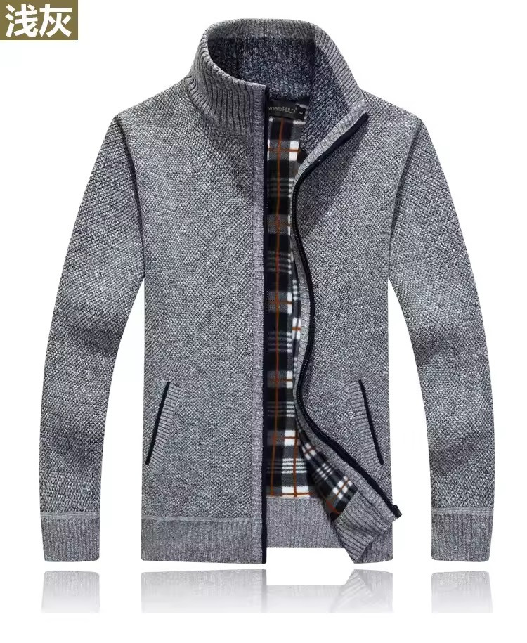 Men's Zipper Knit Sweater Thickened Fleece Top Knitted 146
