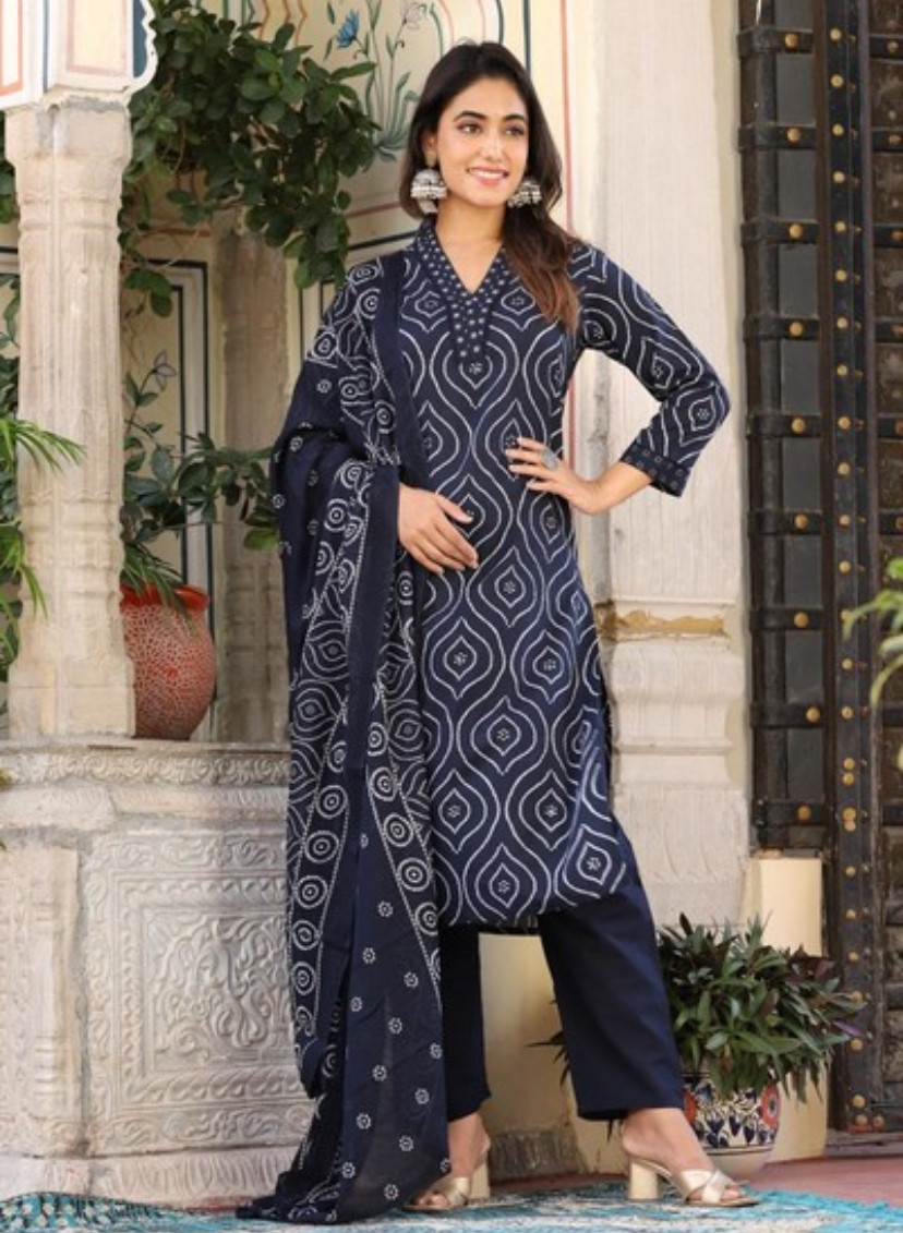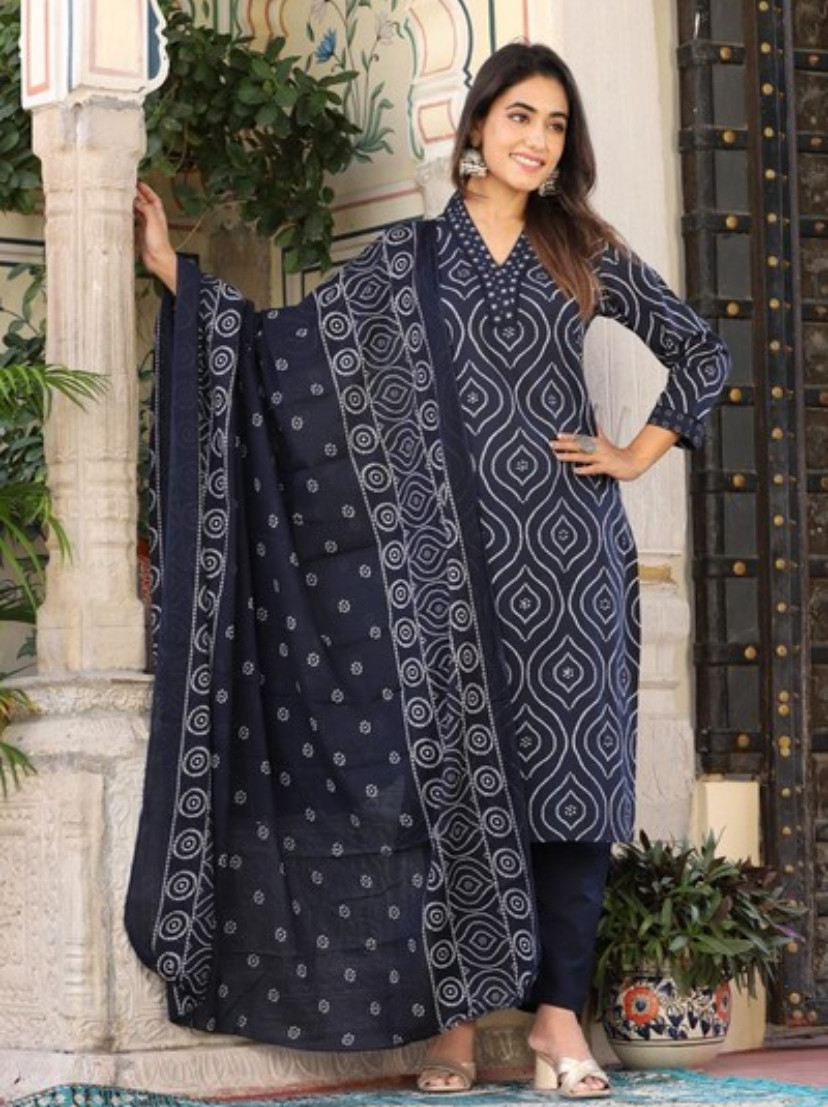 (Plus Size) Cotton Cambric Printed Straight Kurti With Pant and Dupatta 203
