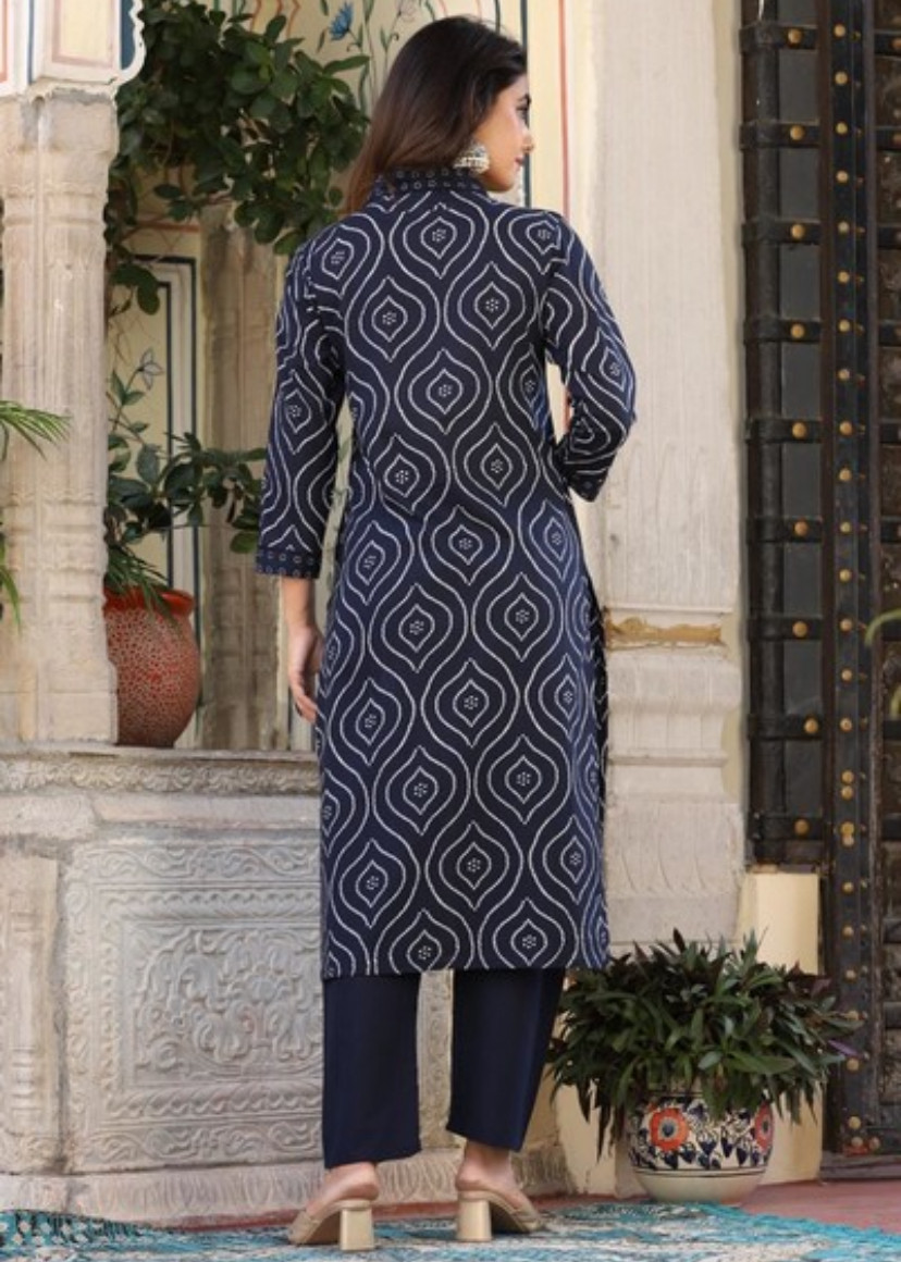 Cotton Cambric Straight Kurti Hand Work Bandhani Print Heavy Quality Easy Washinterlocking-Same Thread, Double Bottom Fold Stiching, Double Side Slit Stiching, color Will not bleed, cloth will not shrink
