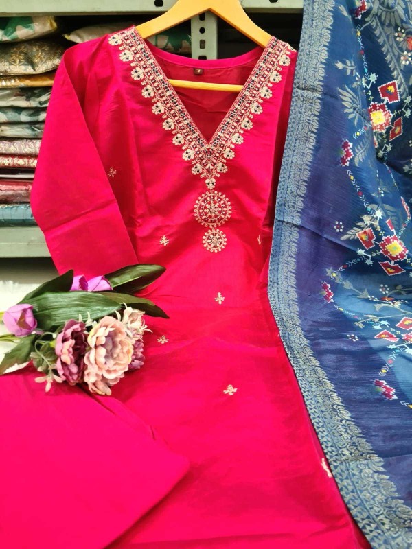 PV Chandra with Sequence Coding Embroidery work kurti with pant and Dupatta 056