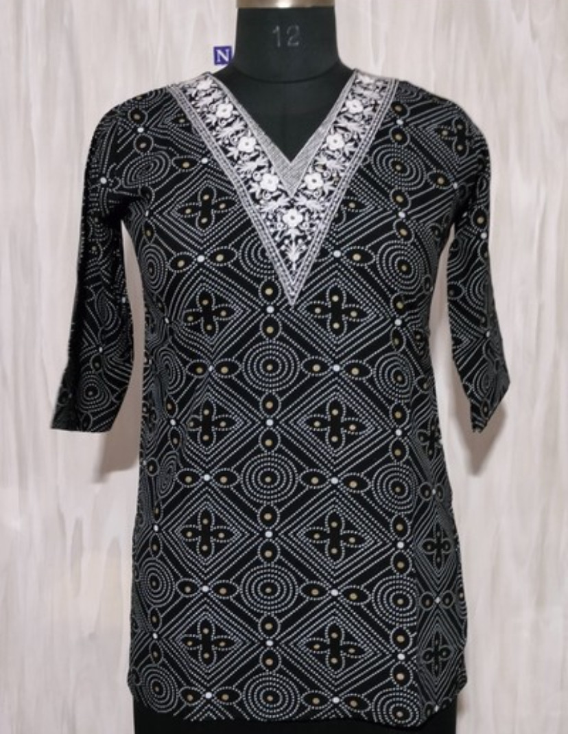 Rayon Embroidery Work with Print Short Kurti 178