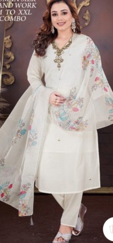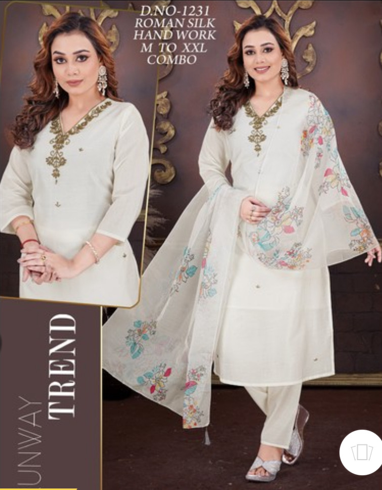 Roman Silk Hand Work Kurti with Pant and Dupatta 210